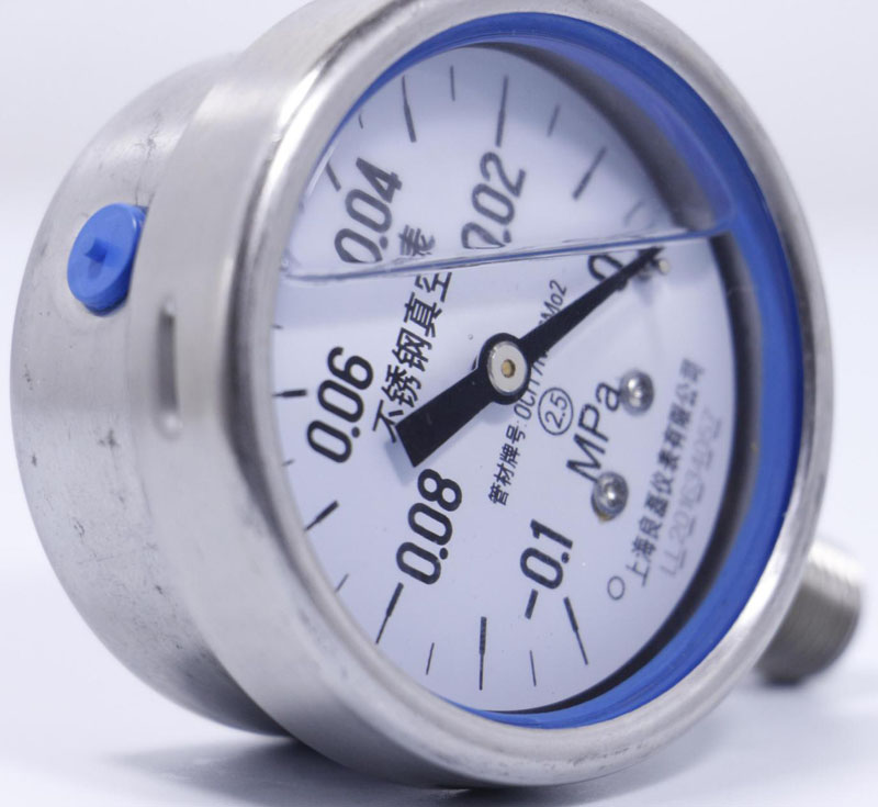 儀表由導壓系統(接頭、彈簧、螺釘等)、齒輪傳動、示數裝置(指針與度盤)和外殼(表殼、表蓋、表玻璃)組成。外殼為密封型結構,有效保護內部原件受環境影響和灰塵侵入。對于在表殼內充液(硅油或甘油)儀表,可以抗工作環境振動和減少介質壓力的脈沖抖動,起到很好的作用。