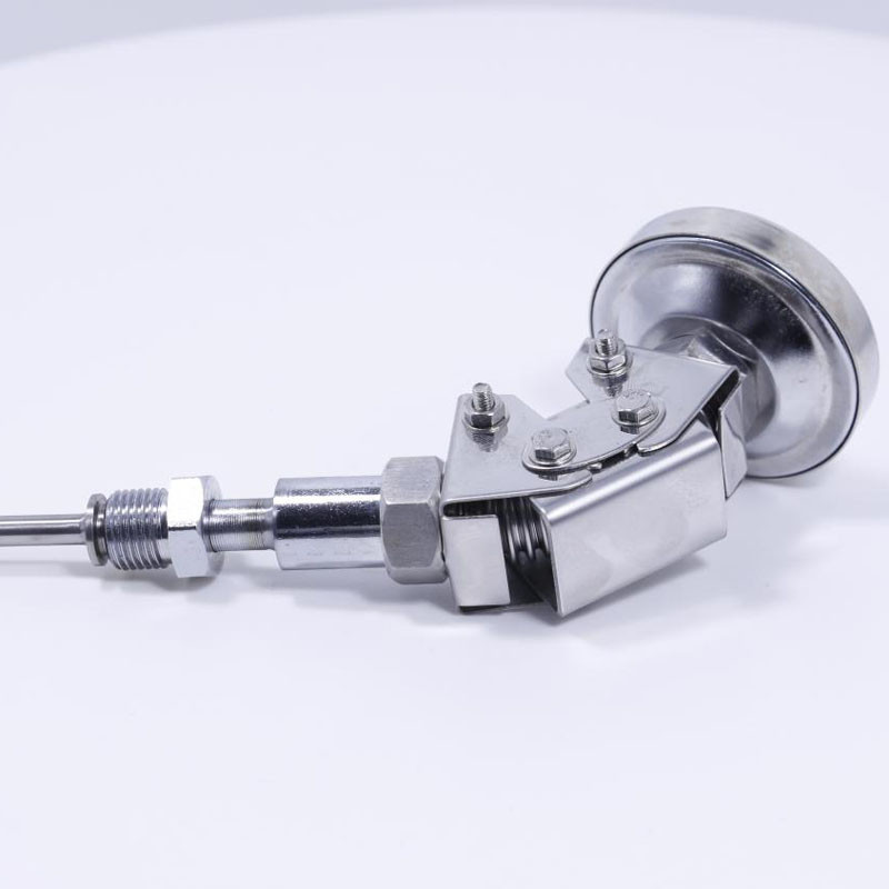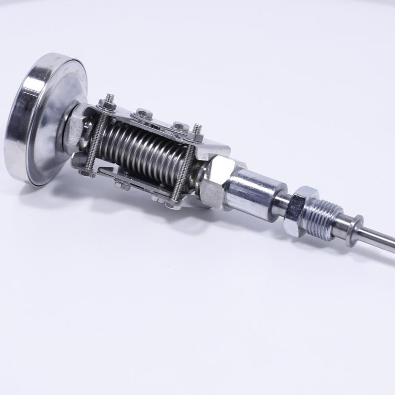 點。當被測介質溫度變化時,自由端上的細軸及轉向傳動機構帶