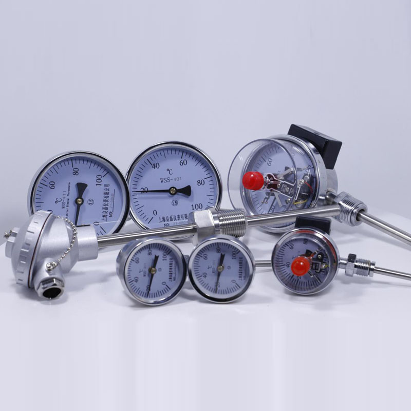 雙金屬溫度計廣泛用于化工、石油、冶金、紡織、醫藥、食品等部門熱門過程的設備和管道介質測溫。是用于測量中、低溫的現場檢測儀表,可以用來直接測量氣體和液體的溫度。具有無汞害、易讀數、牢固耐用等優點。雙金屬溫度計是利用繞制成螺旋管狀的雙金屬片一端被固定,另一自由端與指針連接,隨著溫度的變化而轉動,并帶動指針旋轉指示溫度的單針式指示溫度計。