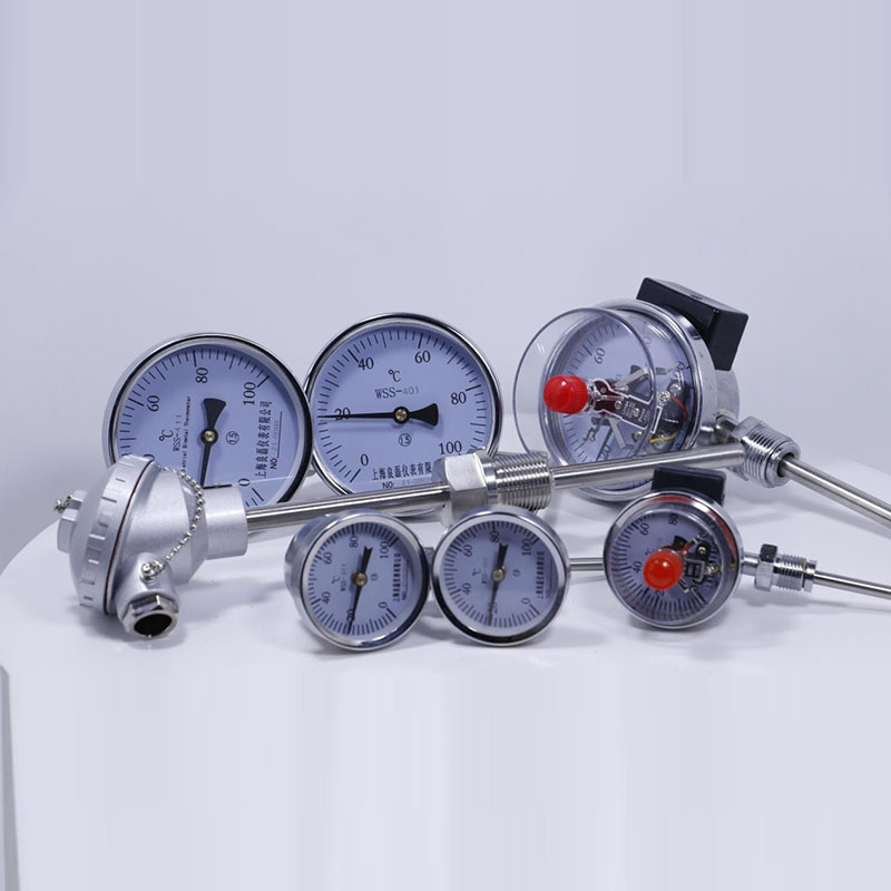 雙金屬溫度計廣泛用于化工、石油、冶金、紡織、醫藥、食品等部門熱門過程的設備和管道介質測溫。是用于測量中、低溫的現場檢測儀表,可以用來直接測量氣體和液體的溫度。具有無汞害、易讀數、牢固耐用等優點。雙金屬溫度計是利用繞制成螺旋管狀的雙金屬片一端被固定,另一自由端與指針連接,隨著溫度的變化而轉動,并帶動指針旋轉指示溫度的單針式指示溫度計。
