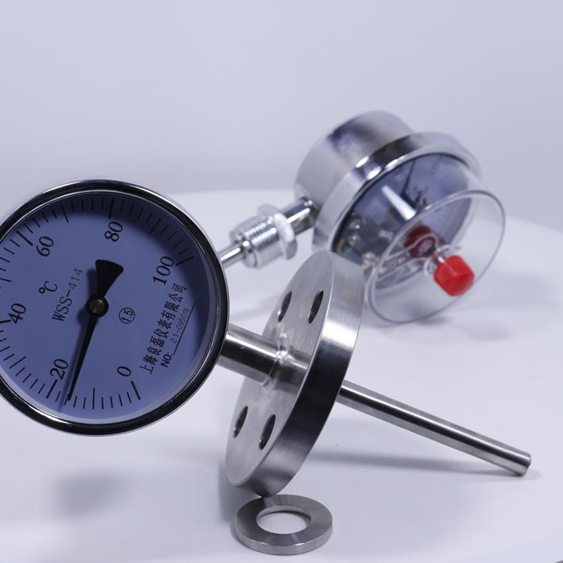 雙金屬溫度計廣泛用于化工、石油、冶金、紡織、醫(yī)藥、食品等部門熱門過程的設(shè)備和管道介質(zhì)測溫。是用于測量中、低溫的現(xiàn)場檢測儀表,可以用來直接測量氣體和液體的溫度。具有無汞害、易讀數(shù)、牢固耐用等優(yōu)點。雙金屬溫度計是利用繞制成螺旋管狀的雙金屬片一端被固定,另一自由端與指針連接,隨著溫度的變化而轉(zhuǎn)動,并帶動指針旋轉(zhuǎn)指示溫度的單針式指示溫度計。
